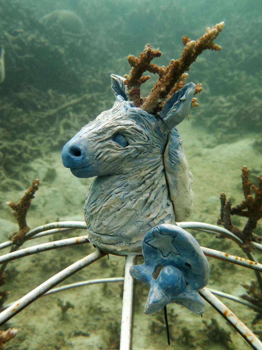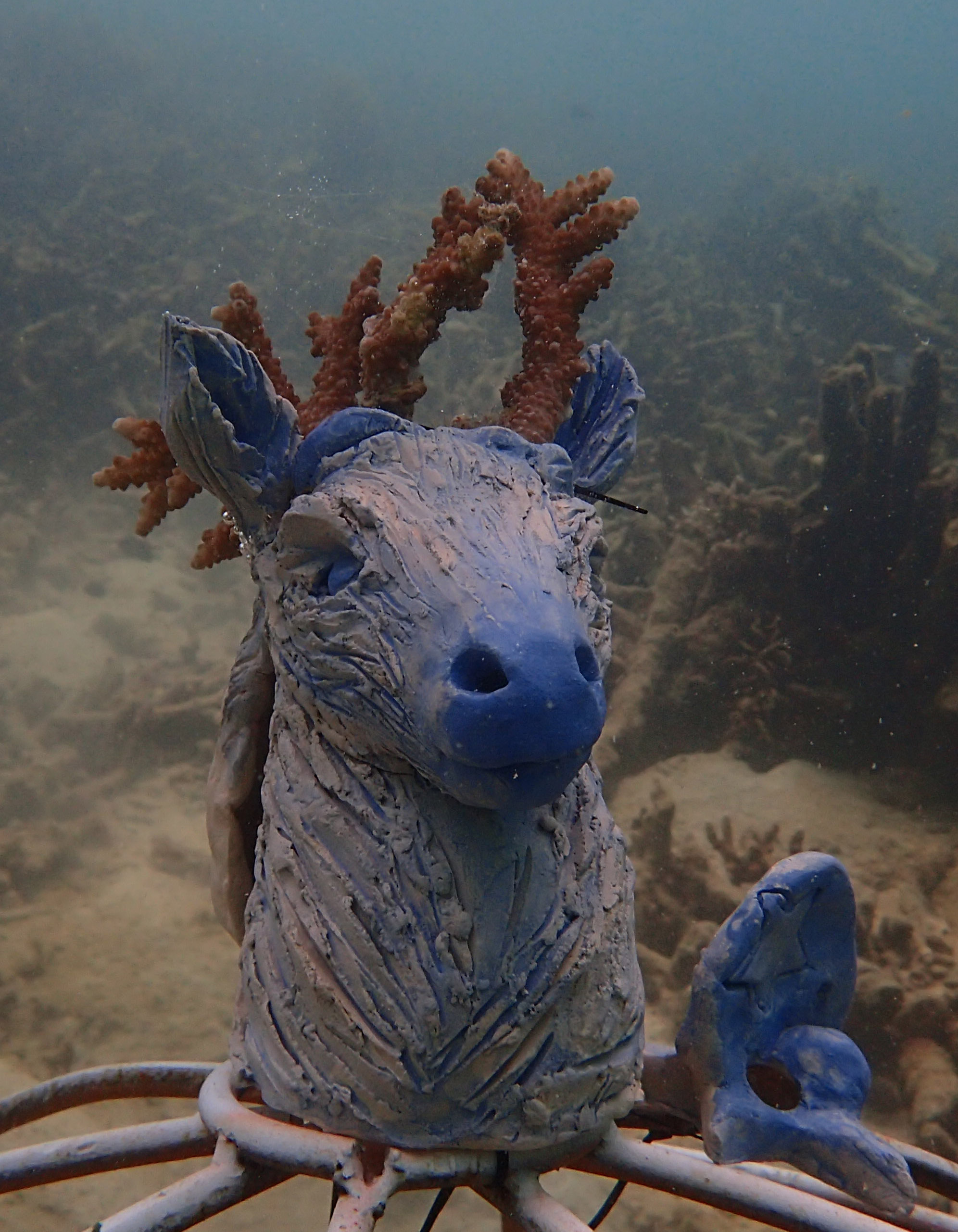La sculpture en céramique que j’ai proposé, permet aux petits poissons de s’abriter et aux coraux d’évoluer, de créer une forêt autour de cette figure de cerf.
